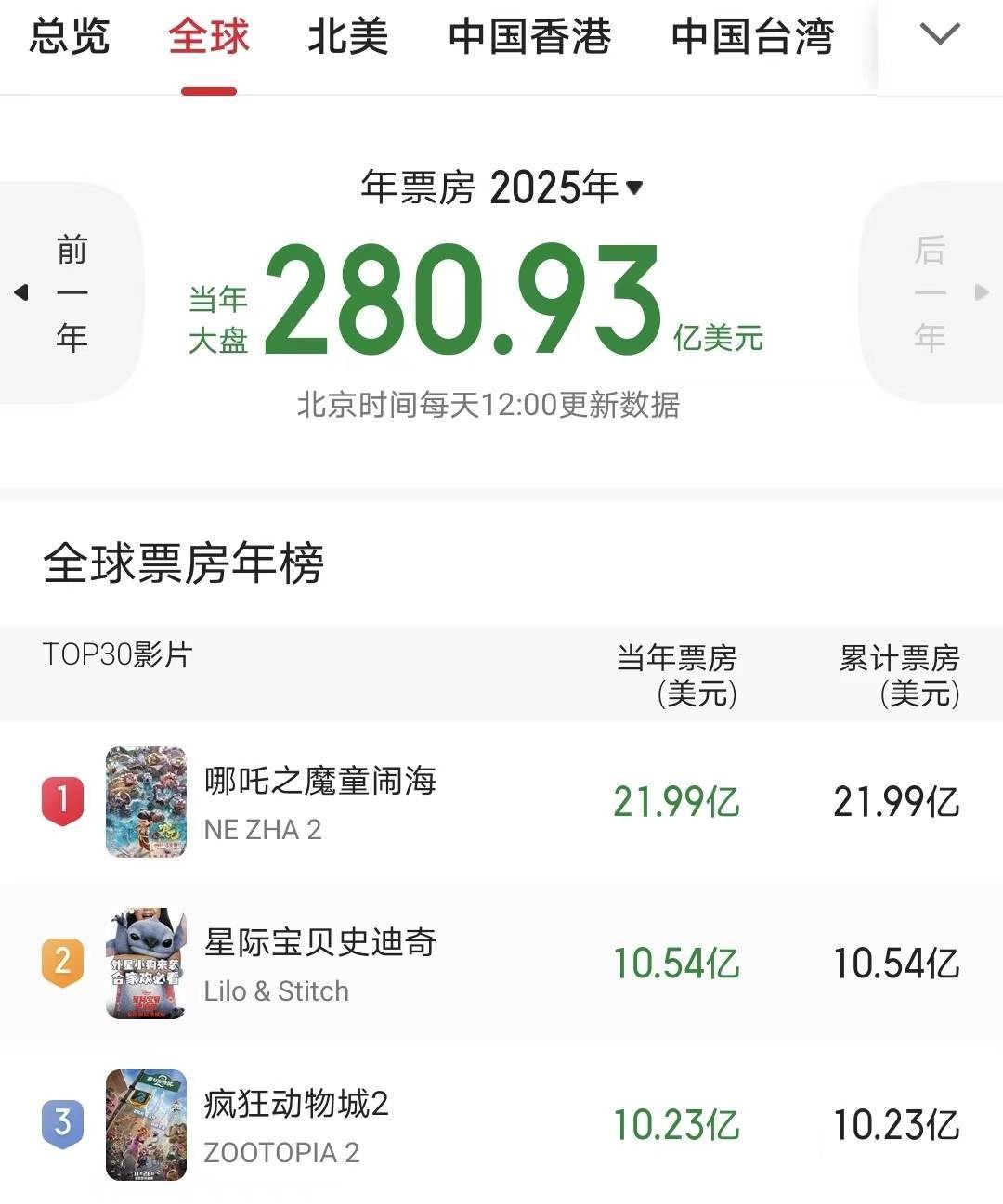 而最主要的一点,就是《疯狂动物城2》在北美本土以及海外其他市场都没能实现大爆,因而它的全球票房成绩也并不是很突出,目前才刚刚超过10亿美元,距离《哪吒2》还差近12亿美元。